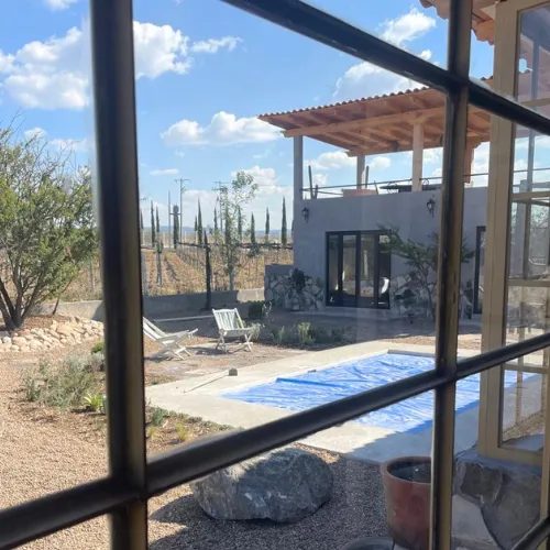 This is contemporary Mexican living with 360° views, capturing nature's daily masterpiece—soft pinks of dawn over Tres Raices Vineyard to amber sunsets behind undulating hills.